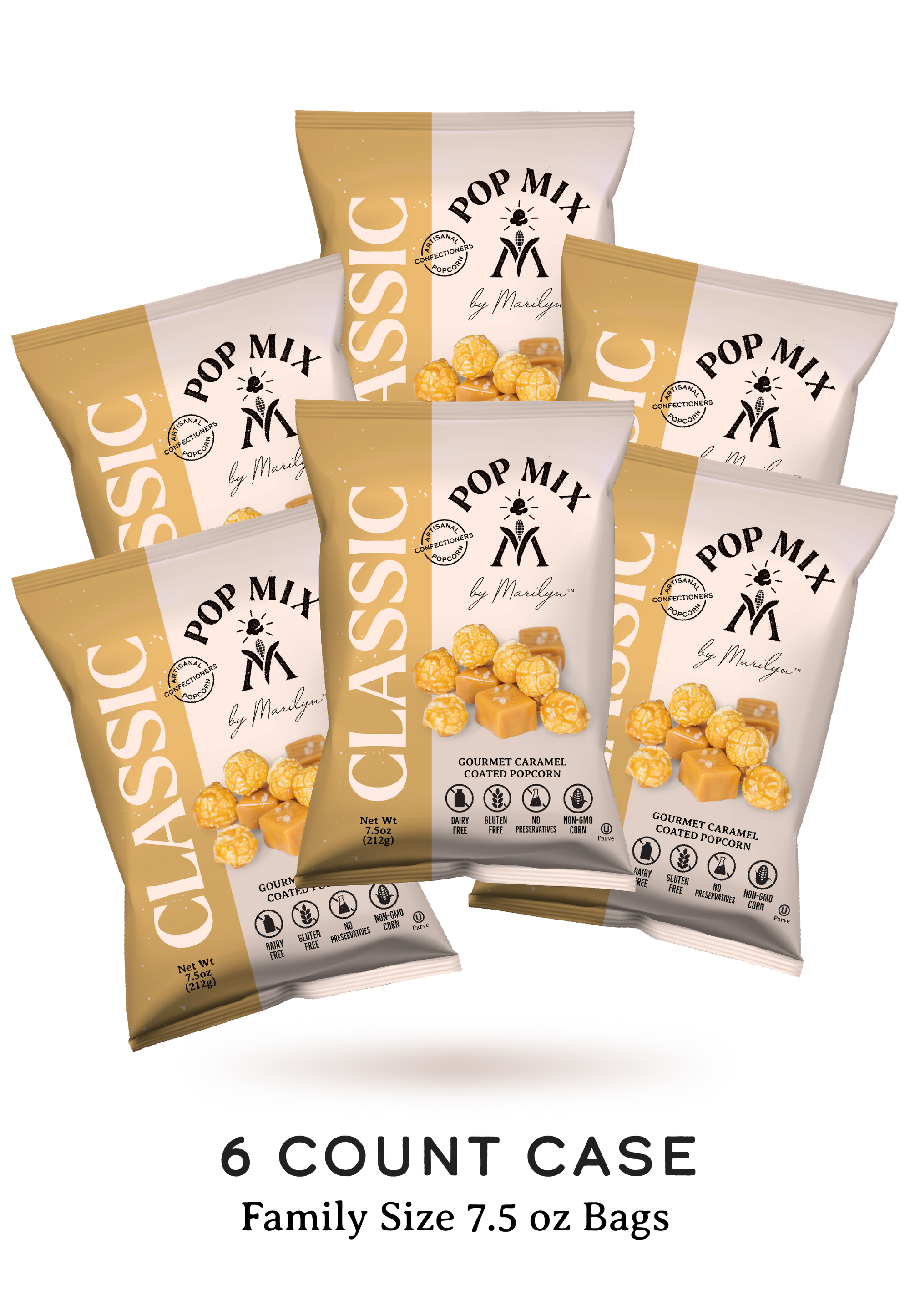 Lightly salted with flakes of real natural sea salt, this caramel-coated popcorn treat will give you that salty-sweet crunch you've been craving. Each non-GMO corn kernel is lovingly air popped to perfection by our gourmet artisanal chefs. Cascading rivers of caramel decadence coat the popcorn, ensuring a delicious balanced flavor profile to excite the palate. The caramel corn is then cooled & bagged at exactly the right temperature to capture that perfect crunch. Our mouthwatering experience will leave you craving for more! Handcrafted in small batches, our artisans only use the finest premium ingredients to create this addictive masterpiece. Sold as a 6-count case. Each pouch is 7.5 ounces and contains 7 servings per container (42 servings per case).